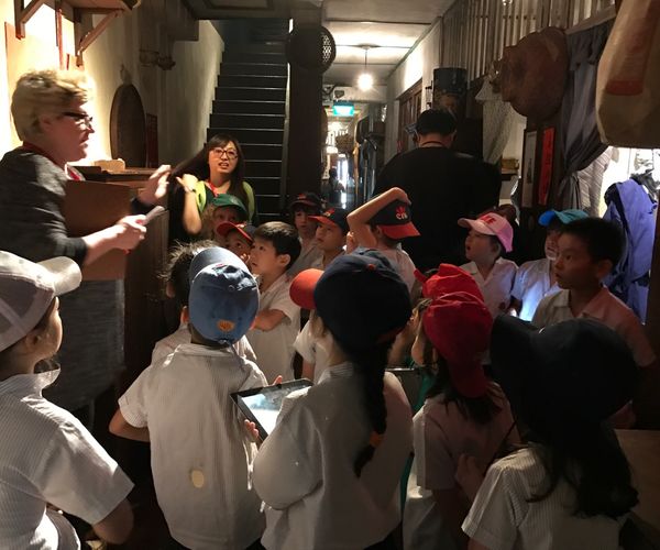 新加坡原貌馆(Chinatown Heritage Centre)是一所真实还原了新加坡早期华人生活的展览馆。我们希望通过这样的参观学习活动,让学生切身实地地感受到以前人们的生活与现在人们生活的不同,以及科技怎样影响到我们现实的生活。在PYP协调员Rachel的带领下,中英文班主任老师以及中文教务督导共同策划了这次活动。新加坡原貌馆共三层,其中,第一层由中文教务督导郭老师用中文进行讲解和引导探究活动,第二层由PYP协调员Rachel 用英文进行讲解和引导探究活动,最后第三层由各班中英文班主任老师带领,让学生有自由提问和学习的过程。这样安排的主旨是使用IB探究学习的方式,让学生在中英文两种语言的指引下,进行主题式学习。在活动的过程中,学生们不但能充分理解教学单元中的主旨概念,并且也能对本土文化产生深入的认识。