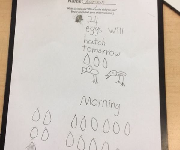 We first purchased an incubator, a heater and 24 hen eggs from a local distributor. They were set up in the kindergarten pod and the excitement soon rippled throughout the learning environment. Soon the children were making predictions about what was inside the eggs. These ideas covered everything from a tiny omelet to a mermaid.
