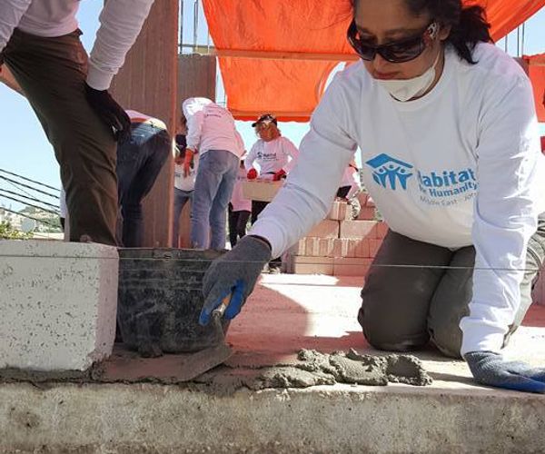 I joined a Global Village international team of 14 volunteers from different countries and we worked together for a week on a home for a Jordanian family of 4. This was my 12th build with Habitat for Humanity and it was a great way to spend my holidays. It was refreshing, rewarding and physically challenging at times, all of which helped me sleep very well each night!