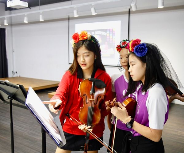 Dressed in Mexican costumes, students greeted the CIS community as they arrived at school, and then hosted a typical Day of the Dead parade that included some classic Mexican tunes (Cielito lindo’, ‘Llorona’, ‘El jarabe tapatío’, and ‘La Cucaracha) performed on the violin by Mr Robert Choi and his students.