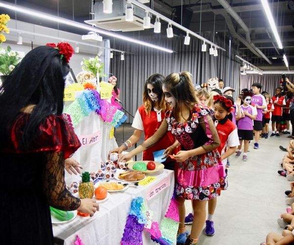 A mini workshop run by the Singapore Mexican Association later in the day gave students the opportunity to taste traditional ‘pan de muerto’ (a type of sweet bread), and make sugar skull makeup and 'papel picado' (decorative paper craft).