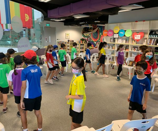 Grade 2s and 3s discovered new books through a game of musical chairs — but with books!