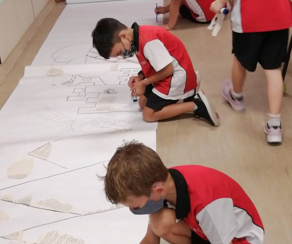 Grade 1 students dived into the magical world of books through the story “Child of Books” by Oliver Jeffers which encouraged imagination and exploration, and got busy in creating a paper mural inspired by the story.