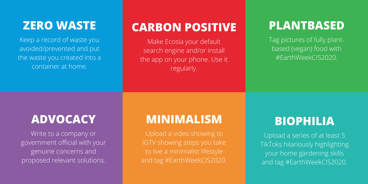 Between 17 and 22 April 2020, CIS celebrated Earth Week virtually. Across the course of the week, a series of challenges were issued. Each challenge was designed to encourage students to adopt sustainable habits. Michael Broadhead, CIS’s sustainability lead said the goal was to encourage and incentivise sustainable habits in a positive way, while allowing students to be recognised for their responsible behaviours and contributions towards a CIS sustainable culture.