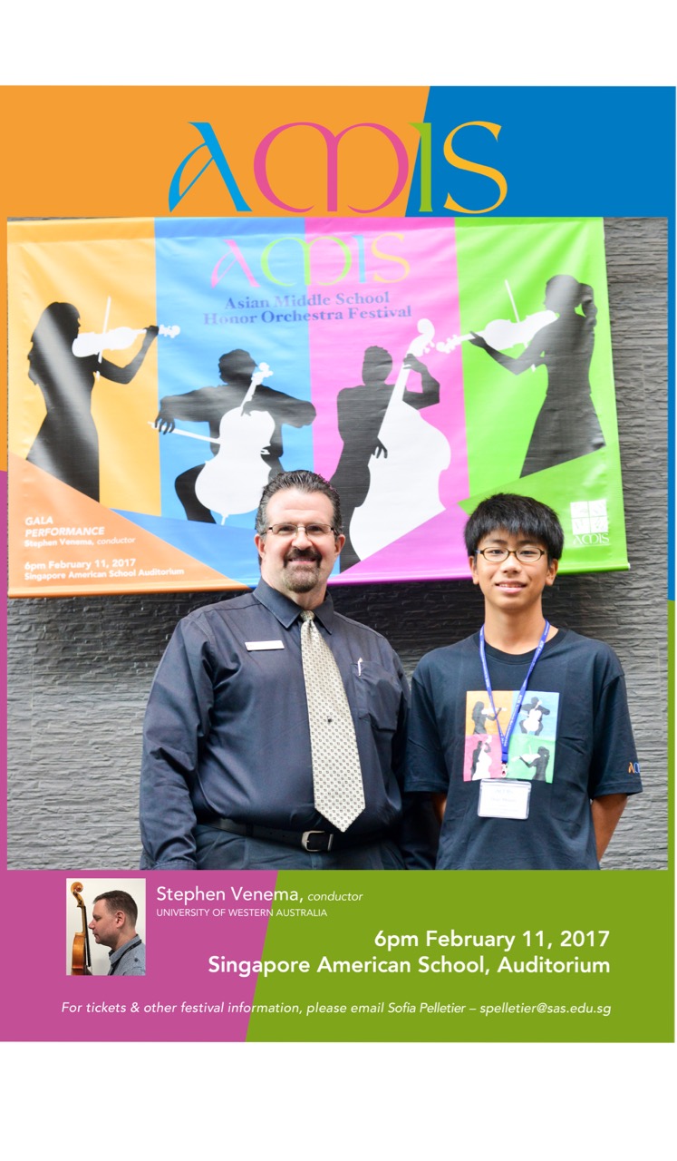 Last October, Grade 8 student Daigo Mimuro was among many of the distinguished student musicians who auditioned for the AMIS Middle School Honor Orchestra festival. Secondary school music teacher Tom Anderson supported Daigo through the process as he sought a spot on the stage at this prestigious event, which was held in February.