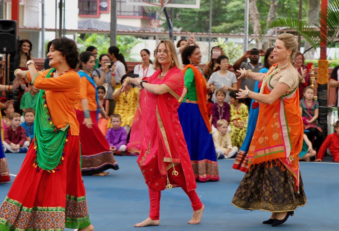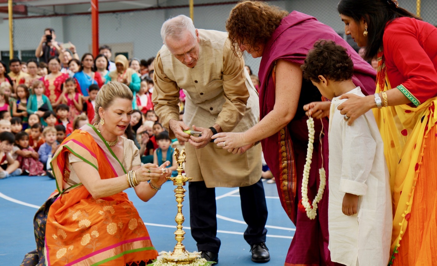 Children, teachers and parents are all dressed in Indian festive clothes. Most of the ladies are wrapped in a beautiful saree. Trying to walk in it is tricky enough, but the courageous ones dance in them! It is indeed a beautiful sight when people from other cultures not only participate, but are fully immersed in our celebrations. As our principal, Mrs Henderson mentioned, it’s the “inclusiveness of the culture that lends itself to being such a wonderful celebration.”