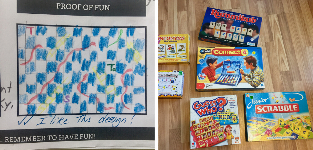 There were a few guidelines: no cheating, read the rules, try to follow them, and have fun. Games included old classics such as “Snakes and Ladders”, “Boggle”, “Battleship”, “Guess Who” as well as math games for telling time, multiplication and division. Each week, students had to complete a game review worksheet where they highlighted 3 of the game rules, the probability of who would win and “proof of fun” - a picture or drawing of the game in action.