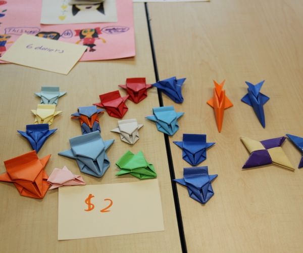 When market day arrived, students were given time to set up their stall, hang their advertisements and lay out their products. They were buzzing with excitement and ready to sell everything they had made and make some money. We invited our grade 5 buddies to come and see what we had been learning. We also shared our learning with other grade 2 classes.