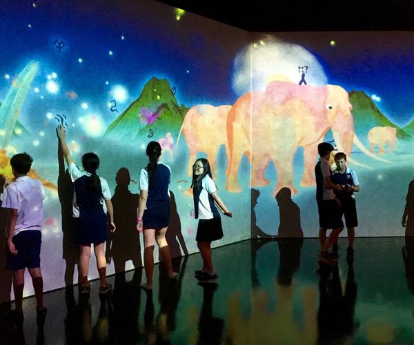 CREATIVITY: The Art/Science Museum Future World at Marina Bay (where the worlds of art, science, magic and metaphor combine through a collection of cutting-edge digital installations) was the place to be for creativity. As soon as we walked in, we saw a wall of waves and then birds swirling around a room. Hmm, interesting. Then it really became eye-openingly involving. Coloured cubes to build, an interactive town to develop and a playground slide that generated fruit and exploding flowers, fruit and sunlight as you slid down.