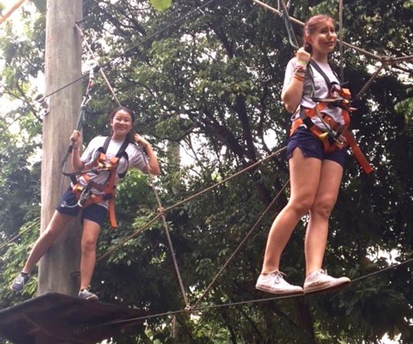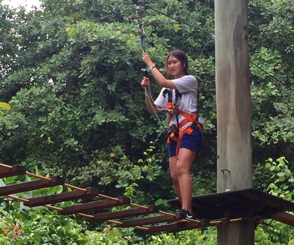 CHALLENGE: Mega Adventure (an adrenalin pumping adventure experience in Sentosa that includes rope climbing and obstacle courses suspended metres off the ground) was the place we experienced mixed emotions. Challenged was the feeling when people were walking along the ropes and trying to grab the next swinging part at level one, or two or – gulp – at level three. It was the feeling when looking down at the ground from high up in preparation for the parachute jump. By the time we arrived at the Zip Line ride, the feeling of challenge was also a combination of exhilaration and a sense of achievement. The process of moving from one’s level of comfort to a level of discomfort, with the security of good safety standards, is an opportunity for personal growth and discovery. What a challenging day it has been!