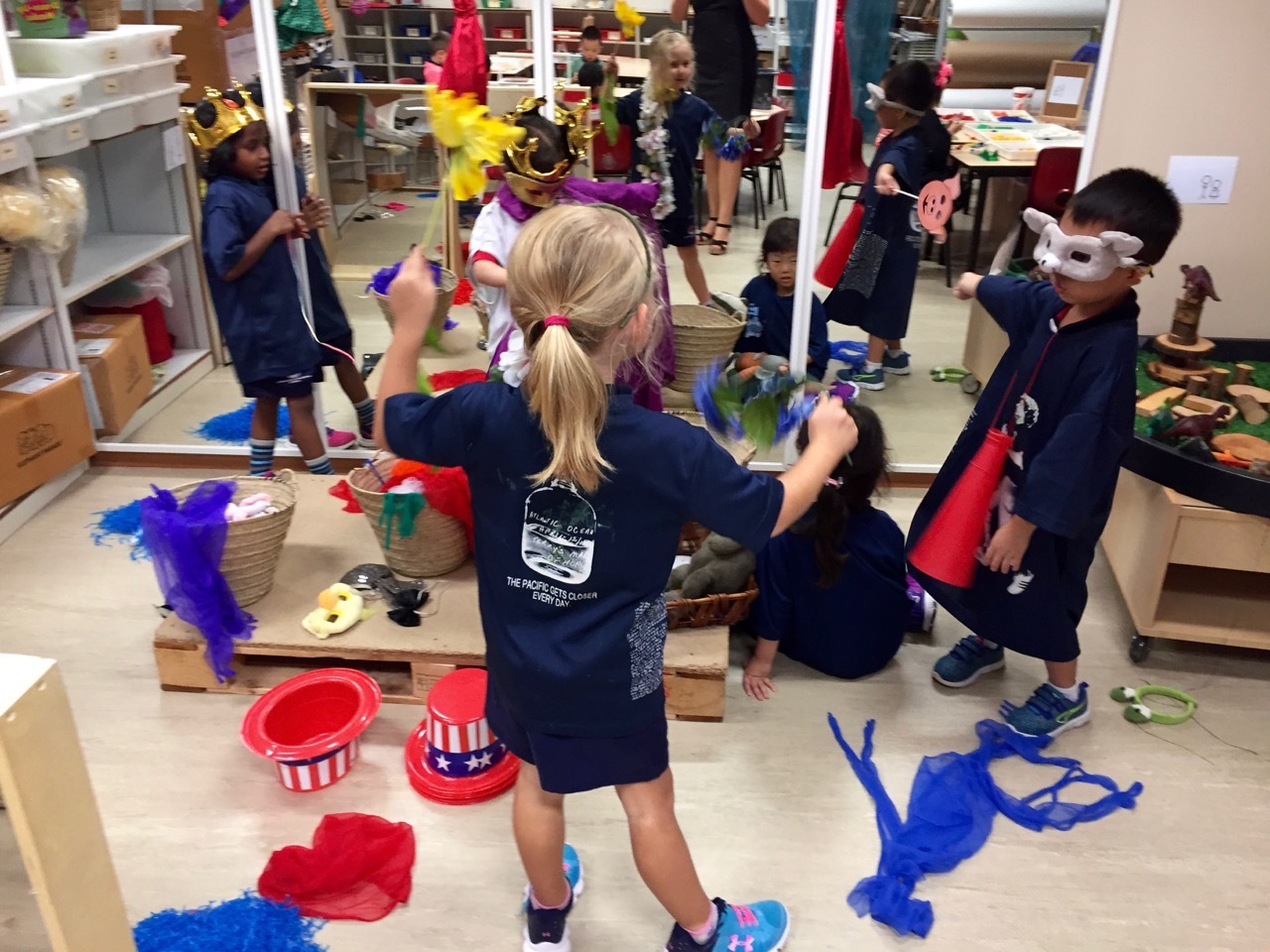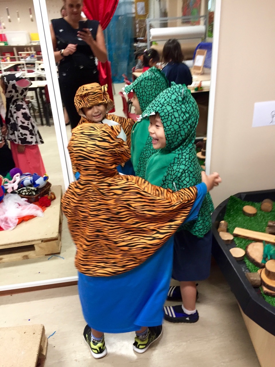 Language development: The various opportunities for the students to dress up, use puppets and characters to tell stories and role play enable the students experiment with the structure of a story, expression, body shapes as well as speaking in an additional language.