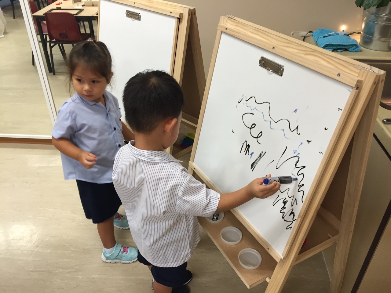 Confidence: The children make their own choices on how to express themselves. While they freely explore within their comfort zone, they also take their cue from their peers. As they move from one area to another, they often find themselves drawn into areas that they may not have discovered unless their friends introduced them.