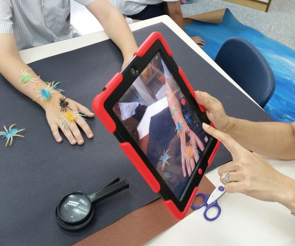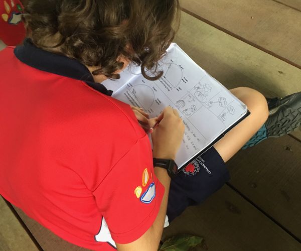 In Chinese bilingual class, students engaged in an interactive provocation task at the Outdoor Discovery Centre on our campus. With iPads, they observed and identified three elements representing connections between living and non-living things. At our off-site Open Minds Programme, students completed a drawing task to demonstrate their understanding of how abiotic changes affect rainforest ecosystems. They received ‘riddle cards’ with clues about living things and had to use science test kits to investigate where they were located.