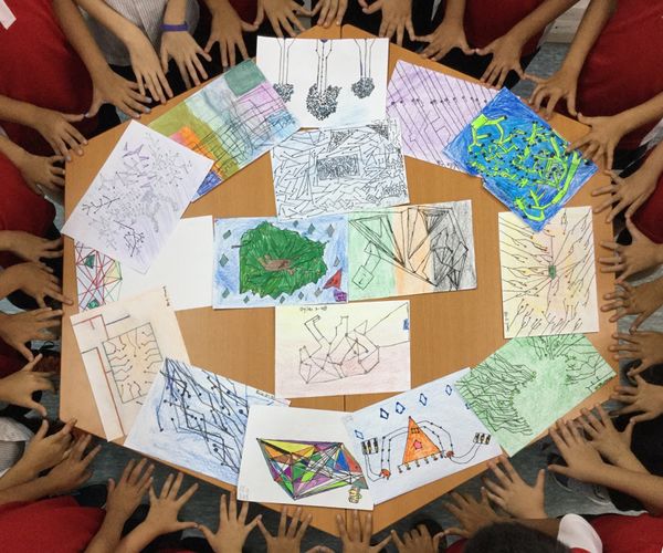 As a reflective approach to exploring features of electrical energy, Grade 3 bilingual programme students drew pictures in abstract sketches of what energy is, how we use energy in daily life and why everyone has the responsibility to conserve energy. They engaged their critical thinking skills on this task. The formation of their hands in a circle around their sketches represents the many perspectives explored. One student titled her sketch “We are all earthlings and our goal is to protect planet Earth.”