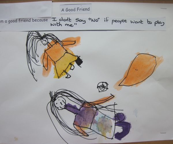 Friendship is important for young children’s social and emotional development. In JK, we have been exploring friendship in different ways. One of our learning tasks was a visible thinking routine called ‘Chalk Talk’ where children created illustrations and shared their perspective on ‘what makes a good friend’. Here are some of their thoughts: “I play nicely with them; I invite them to my house and share my cars; I invite them home to play and give sandwiches to eat; I share and also show them how to colour; I draw pictures of my friends; I take my friends to the nurse’s office when they are sick.”