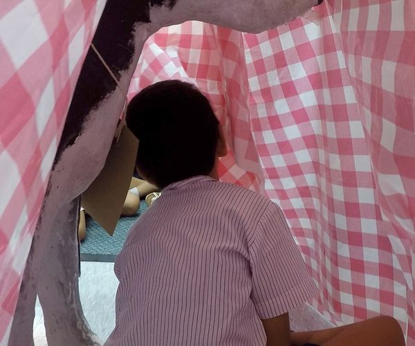 “As the kindergarten visual arts teacher, I decided to build on the students' close connection and attraction towards large animal sculptures in the art room, including a pink elephant and a husky dog. To inquire about the concept of perspective through a visible thinking routine, students were invited to impersonate the sculpture of their choice and were encouraged to "step inside" its body and mind to explore what the animal feels, cares about, perceives and knows. Students were amazing in achieving this goal and engaged in further exploration during their own play time”. -Ms Helene Nguyen-Boiron