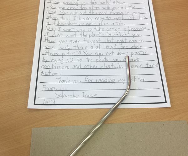 Inspired by Ms Craats’ metal straw initiative, where she encouraged fellow TK teachers to place an order for metal straws, I ordered 50 straws and gave one to each of my students in grade 3-1. Each straw came with a letter that explained how and why plastic straws are harmful to the environment.