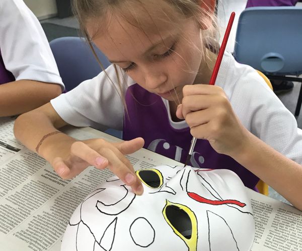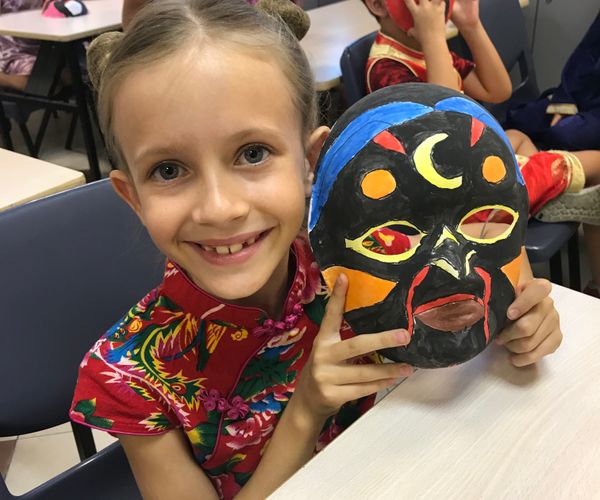 As they prepared for the big day, students discussed and contributed ideas for a performance called “唐诗新唱” (also known as poems and melody). They also decided to use Beijing Opera Masks (京剧脸谱) to depict the unique way of storytelling in Chinese culture. Students then painted the mask of each character in different colours to visually represent values such as loyalty, honesty, justice, and perseverance.