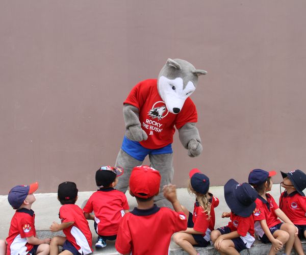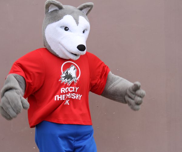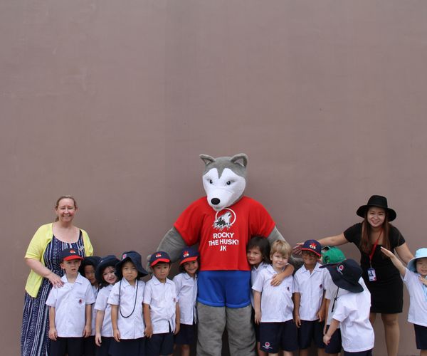 We ran a competition to see who could come up with the best name and, as it was his choice, Husky chose the name, Rocky! Congratulations to the JK Department - especially Rebecca Dobson's JK-4B class who brainstormed names in their classroom and put forward the catchy, super-appropriate name. Their prize is the framed shirt you can see Rocky wearing in the photo as he will be getting a brand-new shirt soon with his name on the back. Our Husky, or rather Rocky, is now a lot happier!