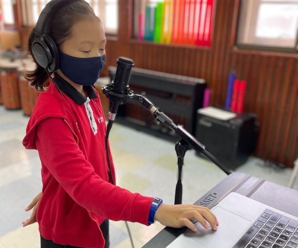 A few months ago, three students excitedly shared a new song with me. Hyobin C., Rhea B. and Yuika H. are all in the same TK Grade 5 class. While the song was just a lyric sheet at the time, it was packed with descriptive lines about how much they love CIS. The girls couldn’t sing due to COVID restrictions, but we composed a melody and worked with GarageBand to record an instrumental track.