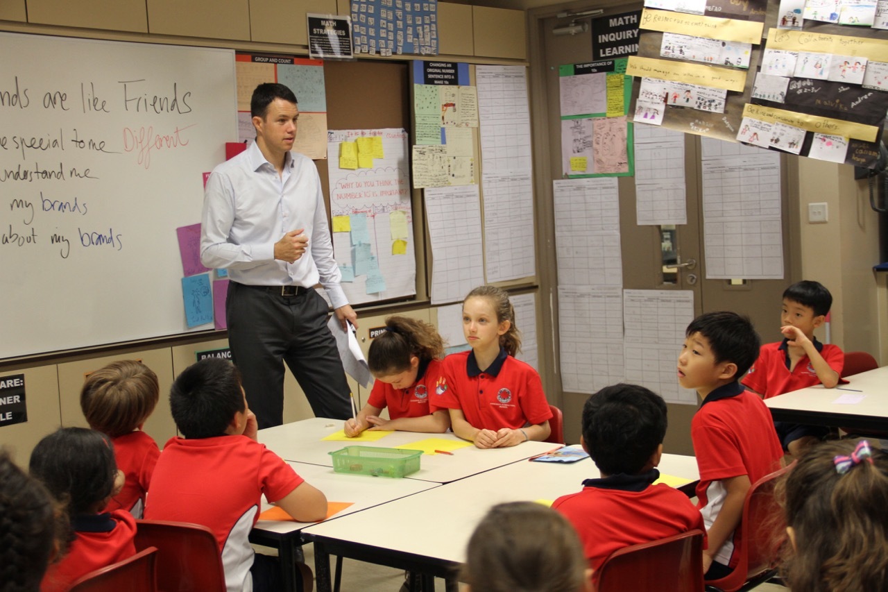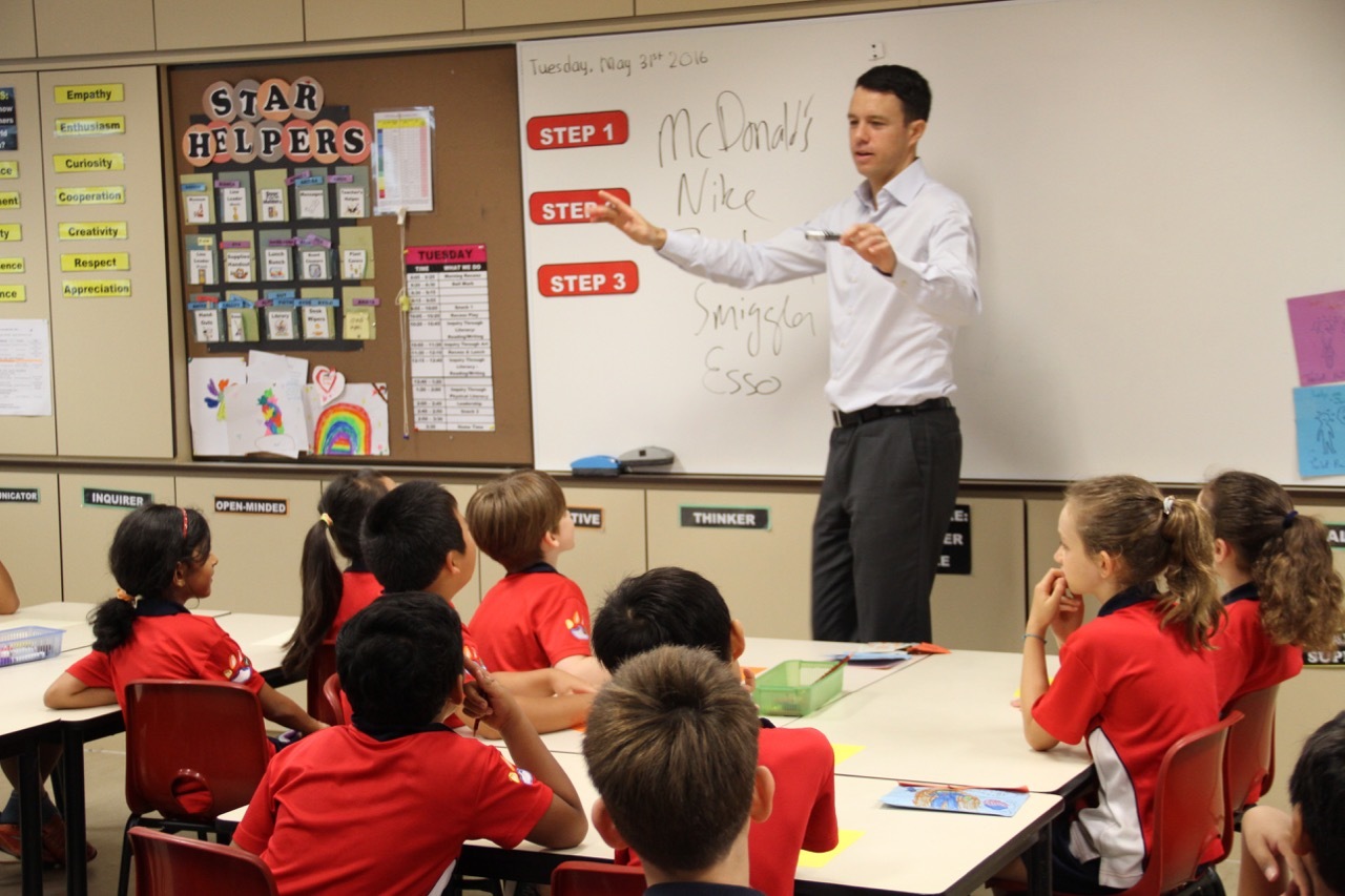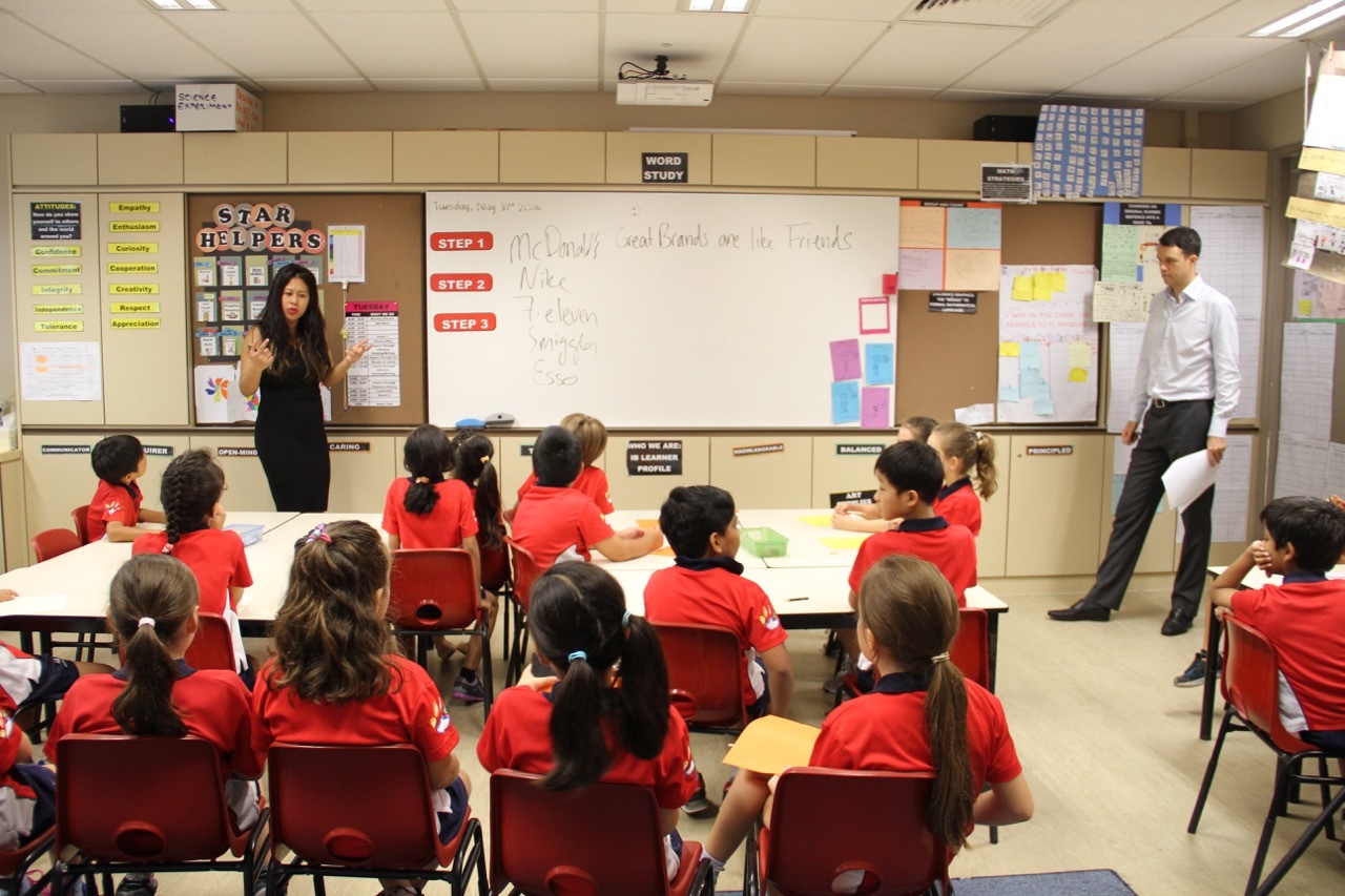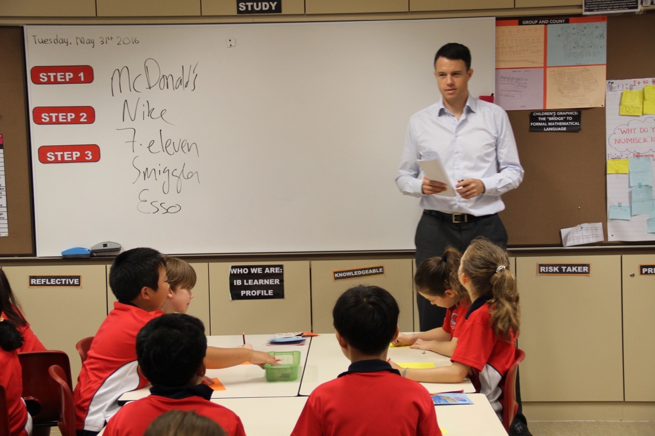 “How do companies appeal to consumers?” was the first question Mr. Blatter posed to the class. The answer was simple: by getting to know consumers’ needs and wants and becoming their “friend”. This answer sparked a flurry of excited talk as students connected a previous learning task to Mr. Blatter’s topic. Class 2-3 students previously designed and conducted surveys on Grade 2 homeroom classes about people’s interests so that they could use the data to design products in the Primary MakerSpace. As Mr. Blatter introduced how advertisers seek to become people’s “friends’, students realised that there is much more that goes on behind the images and phrases of ads, posters and commercials.