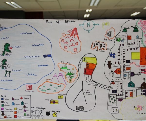 Most student groups created a map to show the land structure of their civilisation to explain things like how the civilisations people used their natural environment, and how trade agreements with other countries around them were set up.